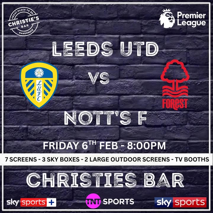 𝐋𝐞𝐞𝐝𝐬 𝐔𝐧𝐢𝐭𝐞𝐝 𝐯𝐬 𝐍𝐨𝐭𝐭𝐢𝐧𝐠𝐡𝐚𝐦 𝐅𝐨𝐫𝐞𝐬𝐭 𝐤𝐢𝐜𝐤 𝐨𝐟𝐟 𝐚𝐭 𝟖𝐩𝐦! Live & Loud at Christies Friday night, under the lights, Elland Road will be ROCKING! 🔥💙💛 Come on you Whites! Let’s get those 3 points tonight! 💙💛 #MOT #LUFC #MarchingOnTogether #PremierLeague #BeatTheForest #christiesharrogate