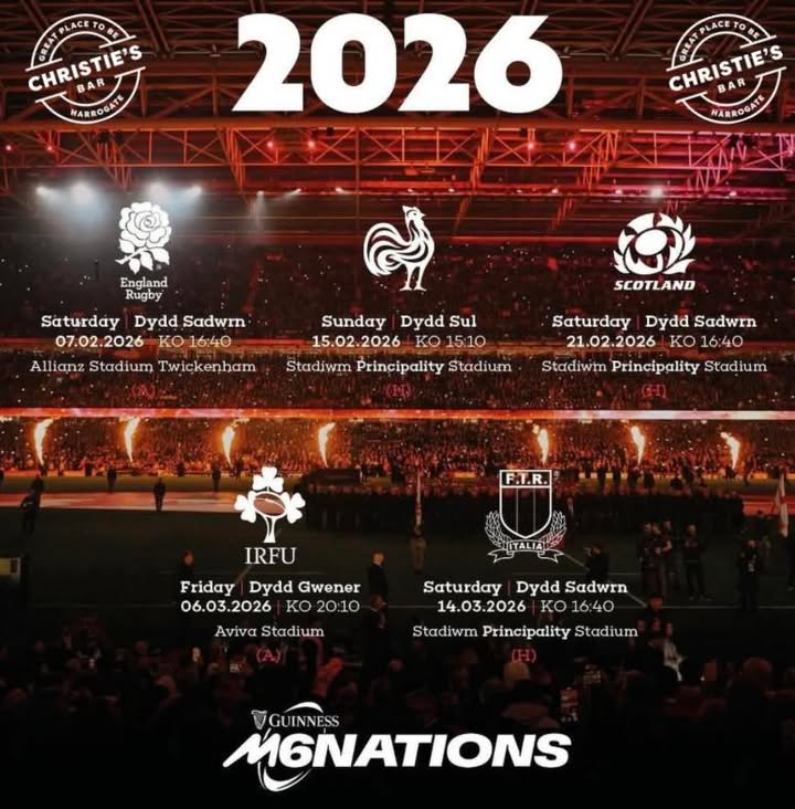 New Year. Old Rivalries. Countdown to the 2026 Guinness Men's Six Nations is on 🏉 🏴 Watch all the rucking action here! Live & loud 🔊 #GuinnessM6N #christiesharrogate 🏴 🏴 🇮🇪 🏴 🇫🇷 🇮🇹