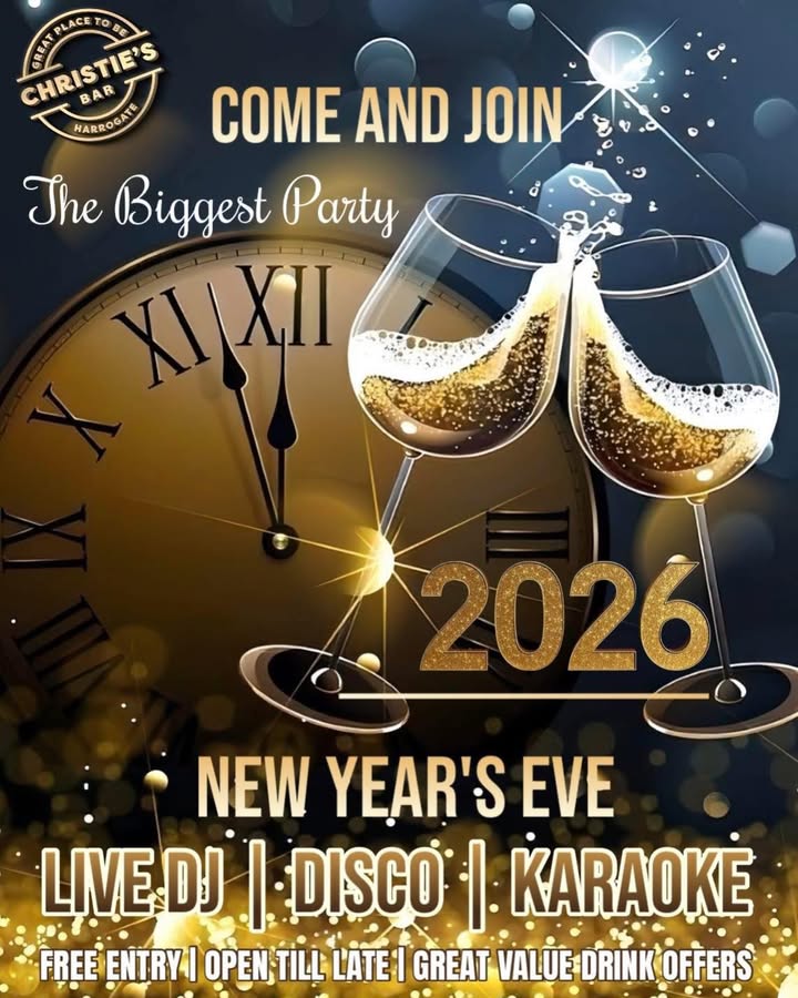 🎉 𝐖𝐇𝐎’𝐒 𝐑𝐄𝐀𝐃𝐘 𝐓𝐎 𝐏𝐀𝐑𝐓𝐘 𝐋𝐈𝐊𝐄 𝐈𝐓’𝐒 𝟐𝟎𝟐𝟔? 🎉 Christie’s Bar is throwing the 𝐔𝐋𝐓𝐈𝐌𝐀𝐓𝐄 𝐍𝐞𝐰 𝐘𝐞𝐚𝐫’𝐬 𝐄𝐯𝐞 𝐁𝐀𝐒𝐇 and you’re invited! 🥂🔥 𝐖𝐡𝐚𝐭’𝐬 𝐠𝐨𝐢𝐧𝐠 𝐝𝐨𝐰𝐧: • 🔥 Live DJ dropping your favourite beats all night! • 🕺💃 Full-on DISCO vibes – get your groove on under the sparkling lights! • 🎤 Karaoke takeover – belt out your favorites and steal the show! We’re staying 𝐎𝐏𝐄𝐍 𝐓𝐈𝐋𝐋 𝐋𝐀𝐓𝐄 – dancing straight into the new year with midnight countdown, confetti explosions, and champagne toasts! 🥳🎆 𝐁𝐄𝐒𝐓 𝐏𝐀𝐑𝐓? 𝐅𝐑𝐄𝐄 𝐄𝐍𝐓𝐑𝐘 𝐀𝐋𝐋 𝐍𝐈𝐆𝐇𝐓! 🚪 No excuses – just good vibes! Grab your crew, throw on your sparkliest outfit, and let’s make this NYE one for the books! 💥 December 31st at Christie’s Bar – The best 𝐀𝐓𝐌𝐎𝐒𝐏𝐇𝐄𝐑𝐄 | 𝐕𝐈𝐁𝐄𝐒 | 𝐏𝐀𝐑𝐓𝐘 in town 😎 #christiesharrogate #ChristiesBarNYE #DiscoFever #KaraokeKings #FreeParty #CountdownTo2026 #LetsGoooo