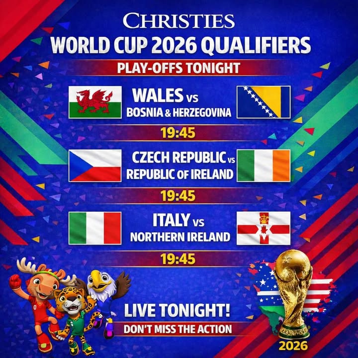 🇮🇹🇮🇪🇨🇿🇮🇷🇧🇦🇽🇰 𝐖𝐎𝐑𝐋𝐃 𝐂𝐔𝐏 𝟐𝟎𝟐𝟔 𝐐𝐔𝐀𝐋𝐈𝐅𝐈𝐄𝐑𝐒 – 𝐏𝐋𝐀𝐘-𝐎𝐅𝐅𝐒 𝐓𝐎𝐍𝐈𝐆𝐇𝐓! Three massive clashes kick off at 19:45 — catch every moment LIVE at Christies: ⚽ 𝐖𝐀𝐋𝐄𝐒 𝐯𝐬 𝐁𝐎𝐒𝐍𝐈𝐀 & 𝐇𝐄𝐑𝐙𝐄𝐆𝐎𝐕𝐈𝐍𝐀 ⚽ 𝐂𝐙𝐄𝐂𝐇 𝐑𝐄𝐏𝐔𝐁𝐋𝐈𝐂 𝐯𝐬 𝐑𝐄𝐏𝐔𝐁𝐋𝐈𝐂 𝐎𝐅 𝐈𝐑𝐄𝐋𝐀𝐍𝐃 ⚽ 𝐈𝐓𝐀𝐋𝐘 𝐯𝐬 𝐍𝐎𝐑𝐓𝐇𝐄𝐑𝐍 𝐈𝐑𝐄𝐋𝐀𝐍𝐃 🎉 Big Screens - Great Atmosphere - Cold Beers 🍺 #WorldCup2026 #ChristiesHarrogate #PlayOffDrama #FootballTonight #HarrogateEvents
