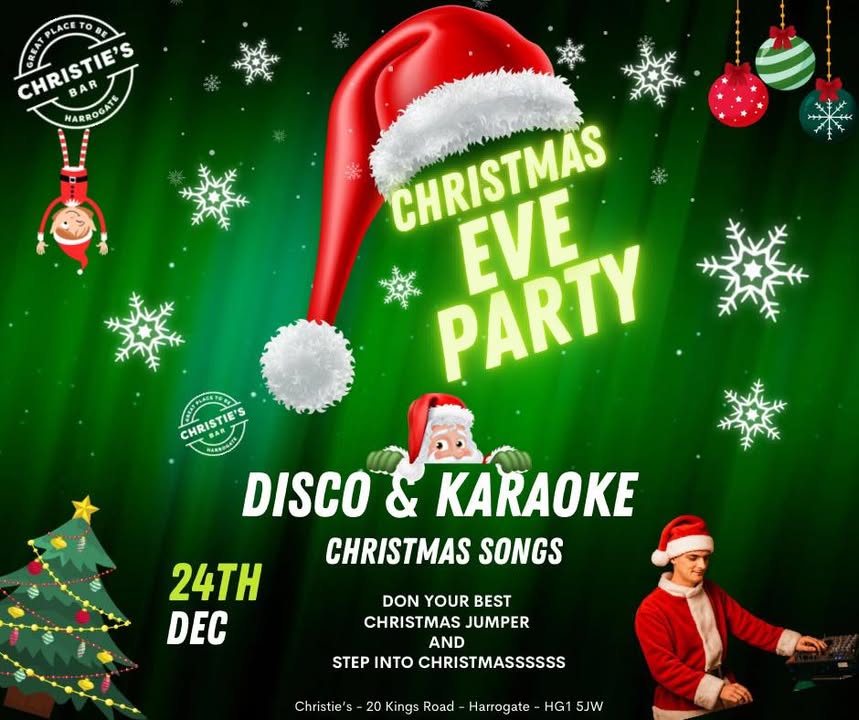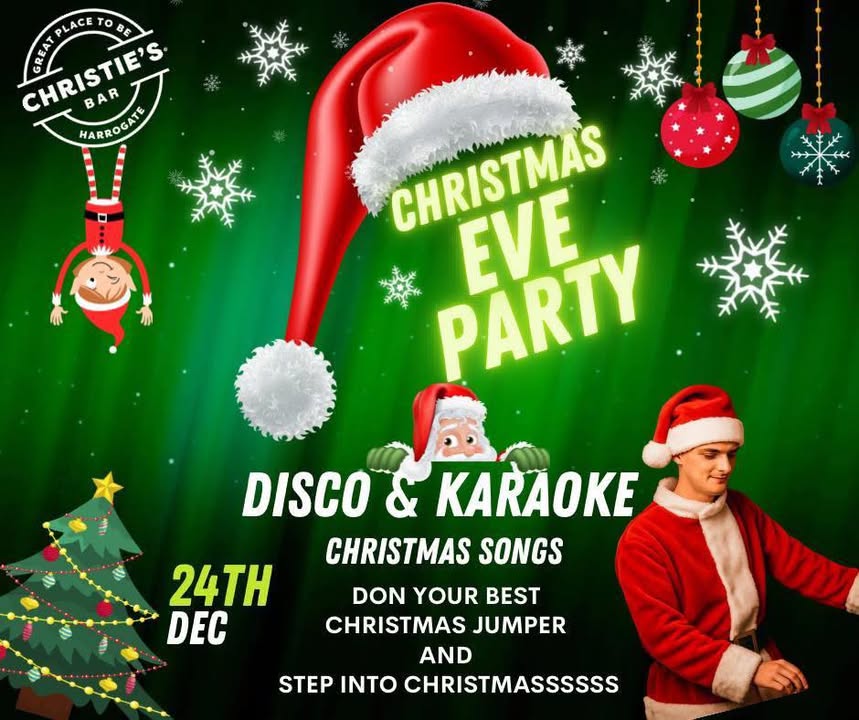 🎄 CHRISTMAS EVE AT CHRISTIE’S – THE BIGGEST PARTY IN TOWN! 🎤🪩 Ho ho ho… We’re ditching the quiet night in for the ultimate Christmas Eve Party! 🎅🚀 Join us Wednesday 24th December from 8pm till late for: ✨ DISCO FEVER – Our DJ is spinning all the classics + festive bangers under the mirror ball 🎤 KARAOKE CHAOS – Grab the mic and murder “All I Want for Christmas” (we’ve all done it) 🍾 Ice-cold drinks, delicious Mulled Wine & shots that sleigh 👗 Dress code: Festive glam, ugly Christmas jumpers, or full-on disco diva – anything goes! Tag your crew and let’s make this the Christmas Eve you’ll still be talking about in 2026! 🎉 #ChristiesChristmasEve #DiscoKaraoke #ChristmasEveParty #christiesharrogate