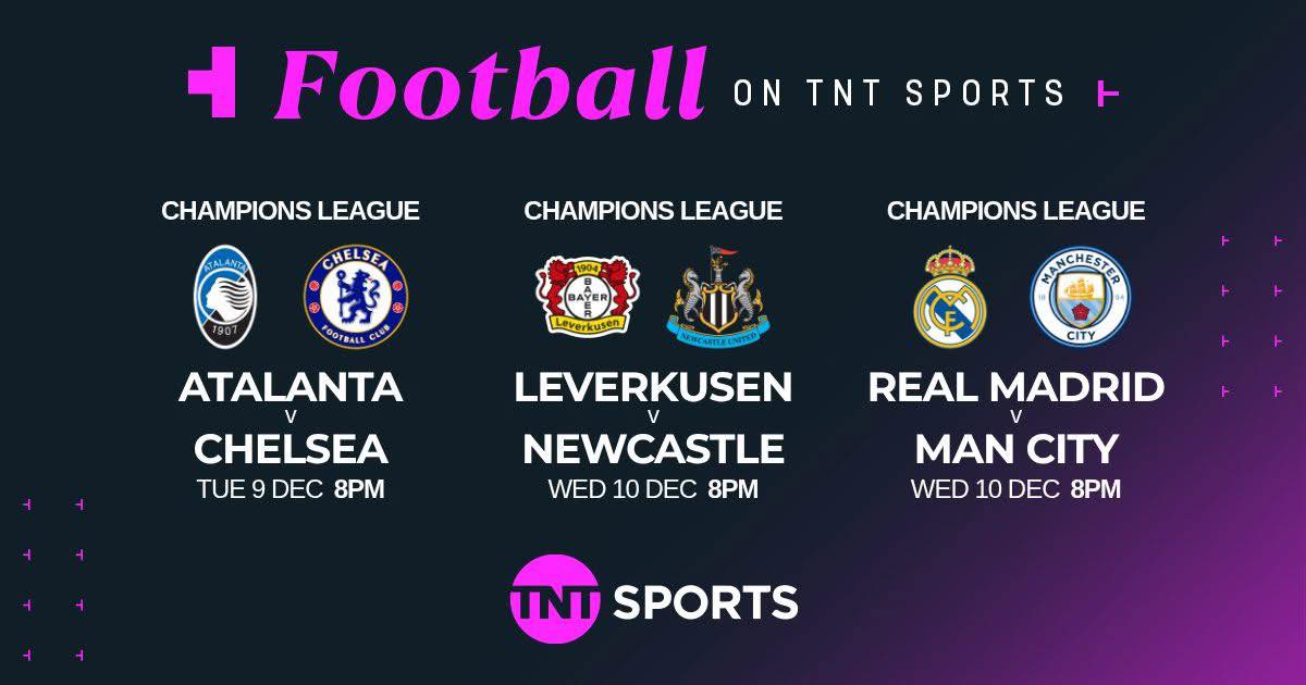 ⚽ Champions League Week! Tuesday 9th December – 8pm 👉 Atalanta v Chelsea Wednesday 10th December – 8pm 👉 Bayer Leverkusen v Newcastle 👉 Real Madrid v Man City Catch every game live with us — big screens, great atmosphere, unmissable football! 🙌